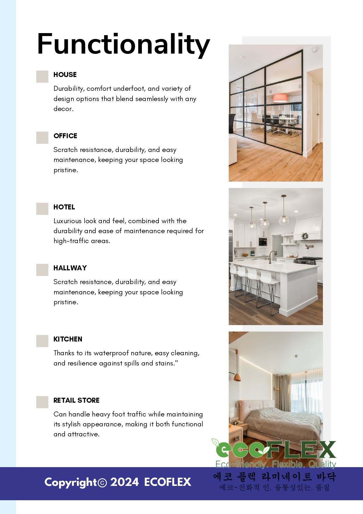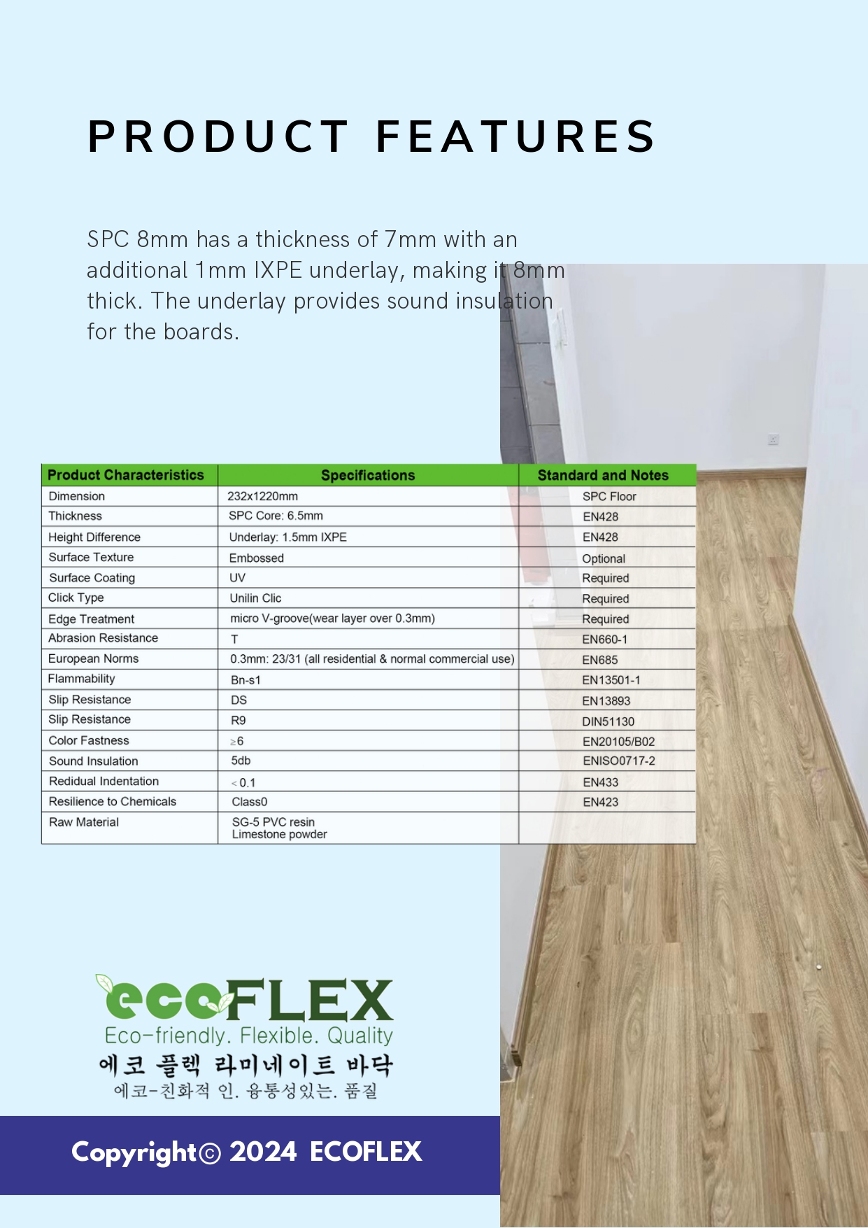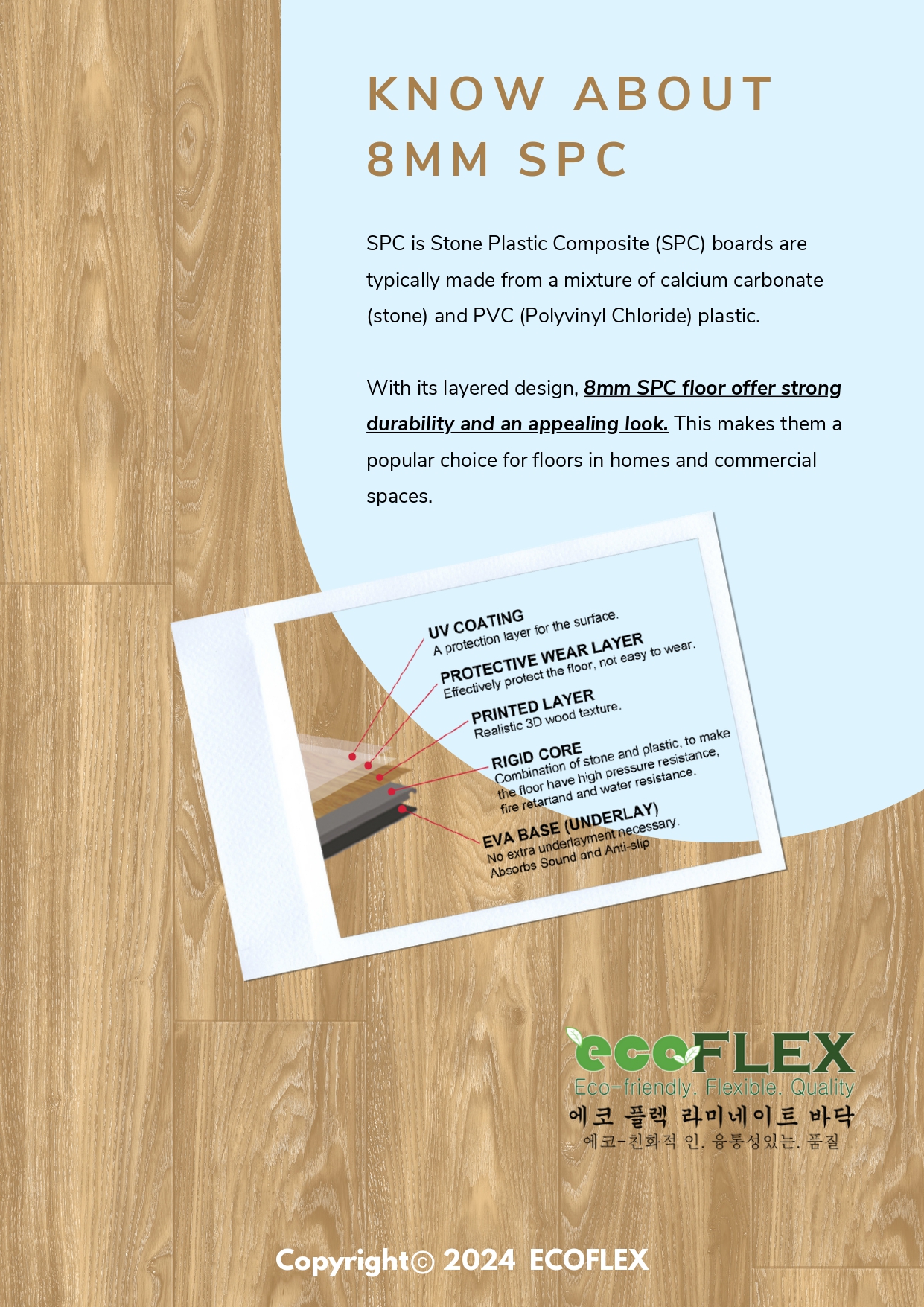 With its layered design, 8mm SPC floor offer strong durability and an appealing look. This makes them a popular choice for floors in homes and commercial spaces.